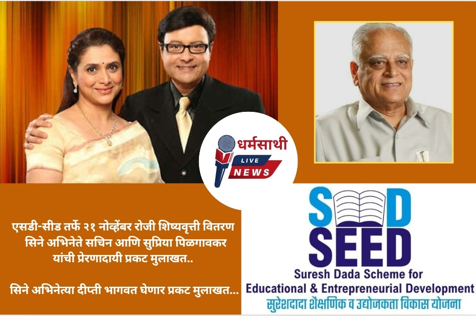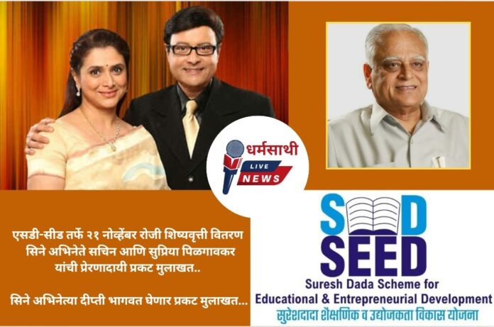 एसडी-सीड तर्फे २१ नोव्हेंबर रोजी शिष्यवृत्ती वितरण सिने अभिनेते सचिन आणि सुप्रिया पिळगावकर यांची प्रेरणादायी प्रकट मुलाखत.. सिने अभिनेत्या दीप्ती भागवत घेणार प्रकट मुलाखत…