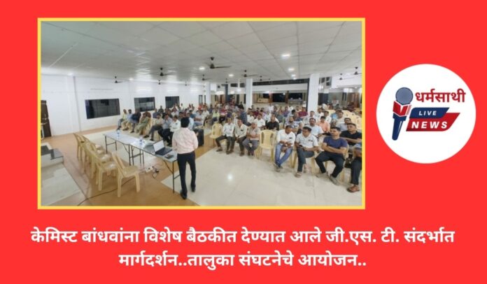 केमिस्ट बांधवांना विशेष बैठकीत देण्यात आले जी.एस. टी. संदर्भात मार्गदर्शन..तालुका संघटनेचे आयोजन..