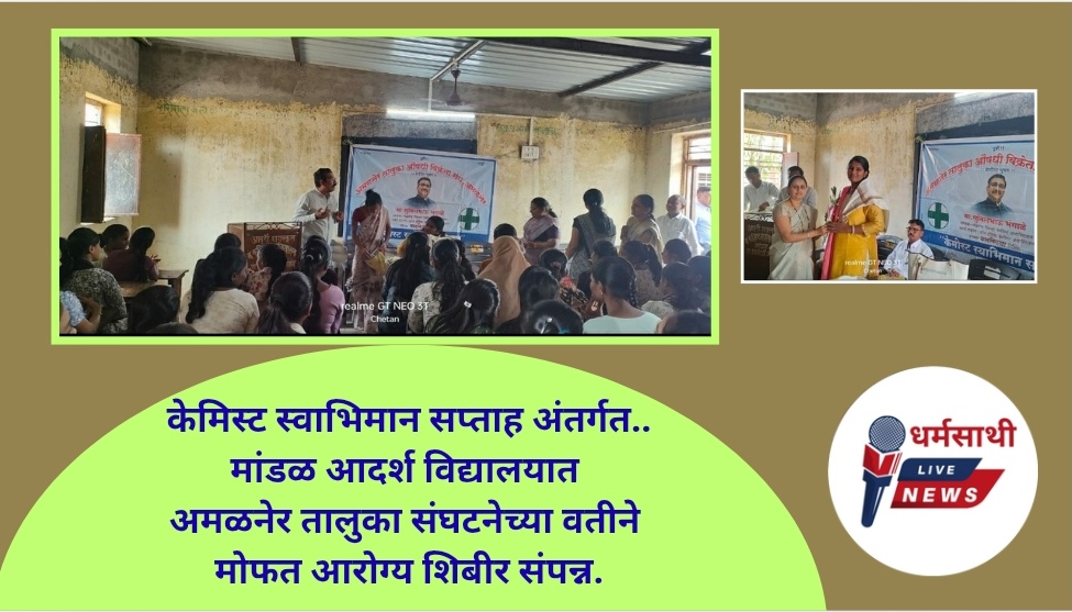 केमिस्ट स्वाभिमान सप्ताह अंतर्गत..मांडळ आदर्श विद्यालयात अमळनेर तालुका संघटनेच्या वतीने मोफत आरोग्य शिबीर संपन्न.