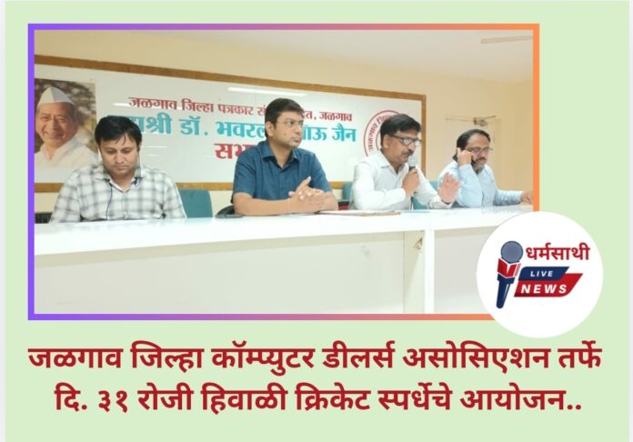 जळगाव- दि.२७ (धर्मसाथी मीडिया नेटवर्क) जिल्ह्यातील संगणक ,सीसीटीव्ही विक्रेते ,फेरविक्रेते,घाऊक विक्रेते,वितरक आणि सेवा संस्था आदीच्या विकासा साठी निर्माण झालेल्या JDCDA अर्थात् जळगाव जिल्हा कॉम्प्युटर डीलर्स असोसिएशन,जळगाव तर्फे हिवाळी क्रिकेट स्पर्धा शनिवार,दिनांक ३१ जानेवारी आणि रविवार,१ फेब्रुवारी २०२६ रोजी एकलव्य क्रीडा संकुल येथे आयोजित करण्यात आली आहे.या संदर्भात माहिती देण्यासाठी पत्रकार परिषद आयोजित करण्यात आली होती.