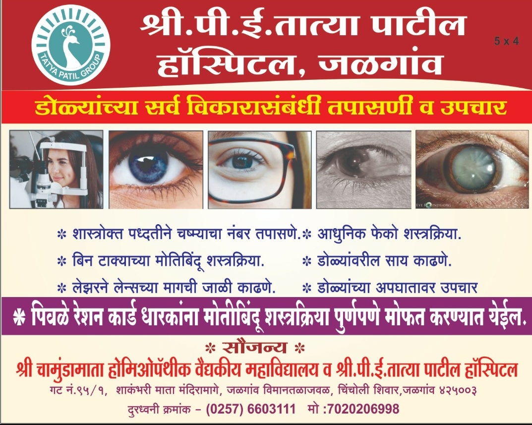 जळगाव – दि.१३ (धर्मसाथी मीडिया नेटवर्क) चामुंडमाता मेडिकल कॉलेज व पी. ई. तात्या पाटील हॉस्पिटल, जळगाव यांच्या संयुक्त विद्यमाने जळगाव पोलीस कर्मचारी व त्यांच्या कुटुंबीयांसाठी मोफत आरोग्य तपासणी व होमिओपॅथी औषध वाटप शिबिराचे आयोजन करण्यात आले आहे.