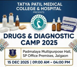 हे शिबिर सोमवार,दि.१५ डिसेंबर २०२५ रोजी पदमांलय मल्टीपर्पज हॉल,पोलीस अधीक्षक कार्यालय परिसर,जळगाव येथे सकाळी ९.०० ते सायंकाळी ४.०० वाजेपर्यंत होणार आहे.या शिबिरामध्ये सर्वसाधारण व दीर्घकालीन आजार, स्त्रीरोग, सांधेदुखी व अस्थिरोग,नेत्र तपासणी तसेच फिजिओथेरपीसंबंधी मोफत तपासणी करण्यात येणार असून रुग्णांना आवश्यक ते मोफत होमिओपॅथी औषध वाटप करण्यात येणार आहे.