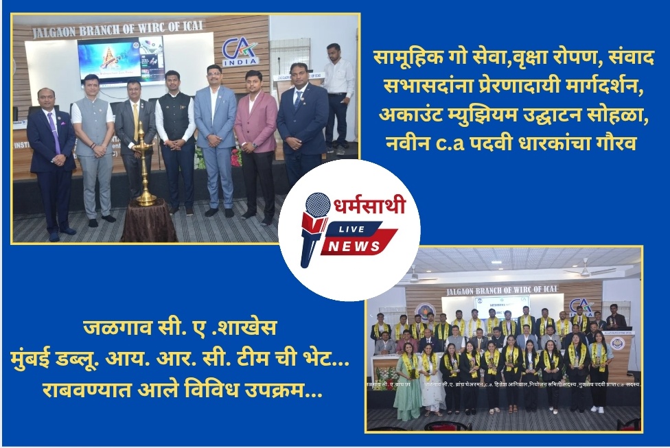 जळगांव – दि.१३ (धर्मसाथी मीडिया नेटवर्क )दि इन्स्टिट्यूट ऑफ चार्टर्ड अकौंटंट ऑफ इंडिया मुंबई विभागाच्या कार्यकारी मंडळाने बुधवार दि. १२ नोव्हेंबर २०२५ रोजी जळगाव सी.ए. शाखेस भेट दिली. सदर कार्यक्रम सकाळी १० वाजता आयोजित करण्यात आला होता. दिवसभर विविध उपक्रम, संवाद आणि प्रेरणादायी सत्रांनी हा दिवस संस्मरणीय ठरला.