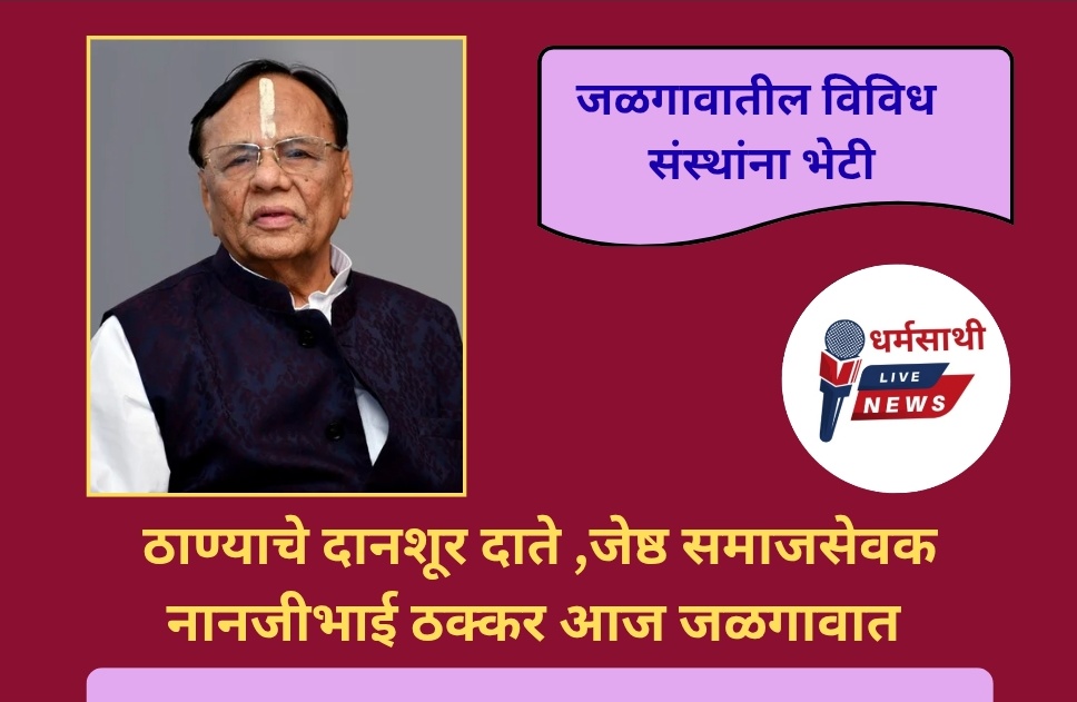 ठाणे येथील धनलक्ष्मीबाई चेरिटेबल ट्स्टचे अध्यक्ष दानशूर दाते नानजीभाई खिमजीभाई ठक्कर यांचे आज दि.१२ मार्च रोजी दुपारी गिताजली एक्सप्रेसने दुपारी 12 वाजता जळगावी आगमन होत आहे.त्यांचे रेल्वे स्थानकात जोरदार स्वागत केले जाणार आहे.