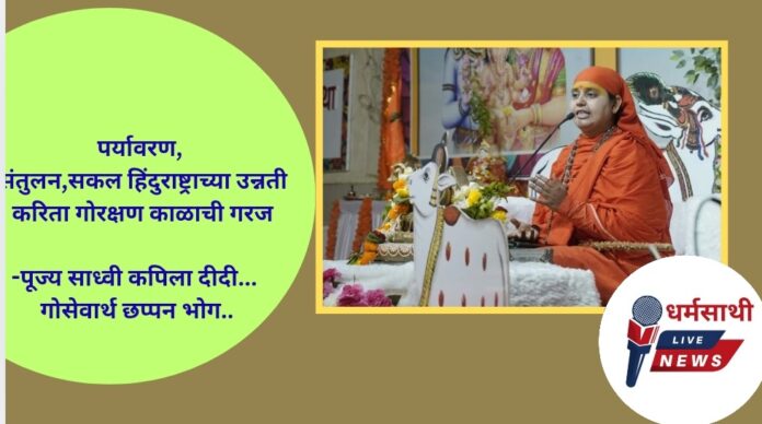 पर्यावरण संतुलन,सकल हिंदुराष्ट्राच्या उन्नती करिता गोरक्षण काळाची गरज -पूज्य साध्वी कपिला दीदी… छप्पन भोग कार्यक्रम संपन्न