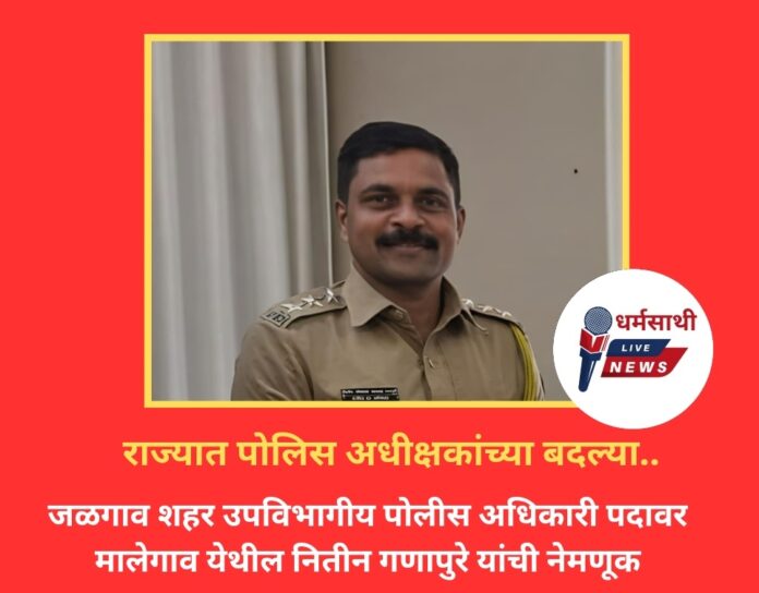 राज्य शासनाने पोलीस उपअधीक्षक/ सहा.पोलीस आयुक्त या संवर्गातील ३५ अधिकाऱ्यांच्या बदलीचे आदेश गुरुवारी जारी केले. त्यात जळगाव शहर उपविभागीय पोलीस अधिकारी पदावर मालेगाव येथील नितीन गणापुरे यांची नेमणूक करण्यात आली आहे.