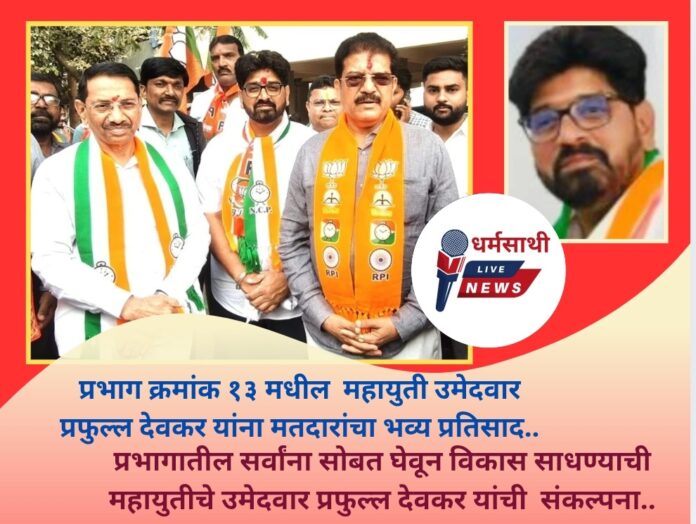 प्रभाग १३ मधील महायुती उमेदवार प्रफुल्ल देवकरांना मतदारांचा भव्य प्रतिसाद..प्रभागाच्या विकासासाठी सर्वाँना सोबत घेवून कार्य करण्याची संकल्पना..
