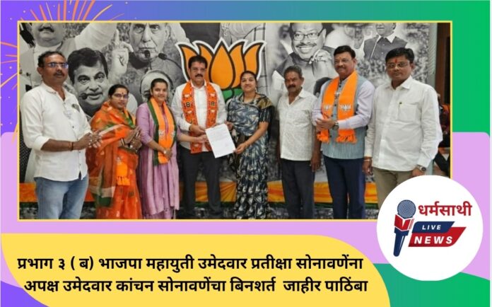 प्रभाग ३ ( ब) भाजपा महायुती उमेदवार प्रतीक्षा सोनावणेंना अपक्ष उमेदवार कांचन सोनावणेंचा बिनशर्त जाहीर पाठिंबा
