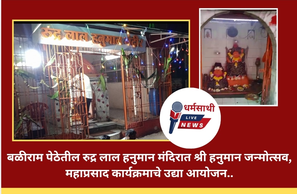 बळीराम पेठेतील रुद्र लाल हनुमान मंदिरात श्री हनुमान जन्मोत्सव, महाप्रसाद कार्यक्रमाचे उद्या आयोजन..