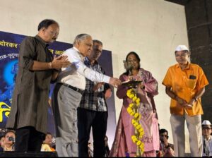 जळगांव – दि.७.(धर्मसाथी मीडिया नेटवर्क) स्व.वसंतराव चांदोरकर स्मृती प्रतिष्ठान आणि डॉ. भवरलाल आणि कांताबाई जैन फाउंडेशन च्या वतीने यंदाचा १० वा अर्थात दशकपुर्ती कार्यक्रम प्रतिष्ठानाने आयोजित केला होता.परंपरेप्रमाणे अनुभूती शाळेच्या विद्यार्थ्यांनी पालखी,दिंडी,व खेळ झाले.दीप प्रज्वलन प्रतिष्ठानचे अध्यक्ष डॉ.विवेकानंद कुलकर्णी सचिव अरविंद देशपांडे,रायसोनी महाविद्यालयाच्या संचालक डॉ.प्रीती अग्रवाल,व जेष्ट रंगकर्मी प्रा.राजेंद्र देशमुख यांनी केले.आणि सुरू झाला अभंगवाणीचा प्रवास.
