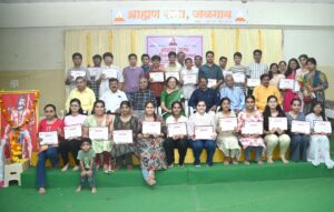 जळगांव : दि.२१ (धर्मसाथी मीडिया नेटवर्क) येथील शतकोत्तर वाटचालीची परंपरा असलेल्या ब्राह्मण सभेतर्फे महाराष्ट्रीयन ब्राह्मण समाजातील गुणवंत विद्यार्थ्यांचा गुणगौरव समारंभ शनिवार दि.२० रोजी दुपारी ४ वाजता ब्राह्मण सभेत मान्यवर अतिथीच्या उपस्थितीत मोठया उत्साहाने संपन्न झाला. ब्राह्मण सभेतर्फे दरवर्षी समाजातील विद्यार्थ्याना प्रोत्साहन मिळावे या हेतूने या कार्यक्रमाचे आयोजन संस्थेतर्फे केले जाते.यावर्षी इ.१० वी,इ.१२ वी तसेच पदवीधर व उच्चशिक्षण घेऊन प्राविण्य मिळविलेल्या ६१ विद्यार्थी,विद्यार्थीनींचा सत्कार मान्यवरांच्या हस्ते करण्यात आला.यावर्षी कार्यक्रमाचे मुख्य अतिथी म्हणून के.सी.ई. संस्थेच्या शैक्षणिक संचालिका डॉ.सौ.मृणालिनी फडणवीस तर विद्यार्थ्यांना करीअर संबंधी मार्गदर्शन करण्यासाठी ज्येष्ठ मार्गदर्शक दिनेश देसाई यांची उपस्थिती लाभली होती.यावेळी दोन्ही वक्त्यांनी विद्यार्थ्यांना मौलिक असे मार्गदर्शन केले.कार्यक्रमाचे प्रास्ताविक ब्राह्मण सभेच्या कार्यकारिणीतील ज्येष्ठ सदस्य उल्हास जोशी यांनी केले.यावेळी त्यांनी विद्यार्थी गुणगौरव समितीच्या कार्याची सविस्तर माहिती दिली.तसेच समाज बांधवांना विद्यार्थी गुणगौरवासाठी जास्तीत जास्त देणगी देण्याचे आवाहन केले.सदर कार्यक्रमाचे सुत्रसंचलन सौ.वैदेही नाखरे,उल्हास जोशी,हेमंत वैद्य,सौ.श्रध्दा कुळकर्णी यांनी केले.व्यासपीठावर डॉ.सौ. मृणालिनी फडणवीस,दिनेश देसाई,ब्राह्मण सभेचे अध्यक्ष नितीन कुळकर्णी, कोषाध्यक्ष संदिप कुळकर्णी,चिटणीस जितेंद्र याज्ञिक उपस्थित होते.कार्यक्रमाच्या यशस्वीतेसाठी कोषाध्यक्ष संदिप कुळकर्णी, चिटणीस अॅड.अजय जोशी,चिटणीस जितेंद्र याज्ञिक, हेमंत वैद्य,राजेश कुळकर्णी,कमलाकर फडणीस,सौ. वैदेही नाखरे,सौ.श्रध्दा कुळकर्णी यांचेसह ब्राह्मण सभेचे व्यवस्थापक पी.आर.कुळकर्णी ,संजय खेडकर,प्रतिक लाळे तसेच कर्मचारी अभिमान तायडे यांचेसह अनेकांचे सहकार्य लाभले.कार्यक्रमाची सांगता पसायदानाने करण्यात आली.