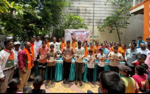 दि.१३ रोजी स.१० वा.वसंत स्मृती भाजपा कार्यालय बळीराम पेठ येथे जळगावच्या विकासाचे आशास्थान व शहराचे आमदार सुरेश दामू भोळे(राजू मामा)यांच्या वाढदिवसा निमित्त जिल्हाध्यक्ष दिपक सूर्यवंशी यांच्या प्रमुख उपस्थितीत शालेय विद्यार्थ्यांना मोफत वह्या वाटपाचा कार्यक्रम आयोजित करण्यात आला होता.अतिशय उत्साहपूर्ण वातावरणात शालेय विद्यार्थी व पालकांची मोठ्या संख्येने उपस्थितीत कार्यक्रम संपन्न झाला.