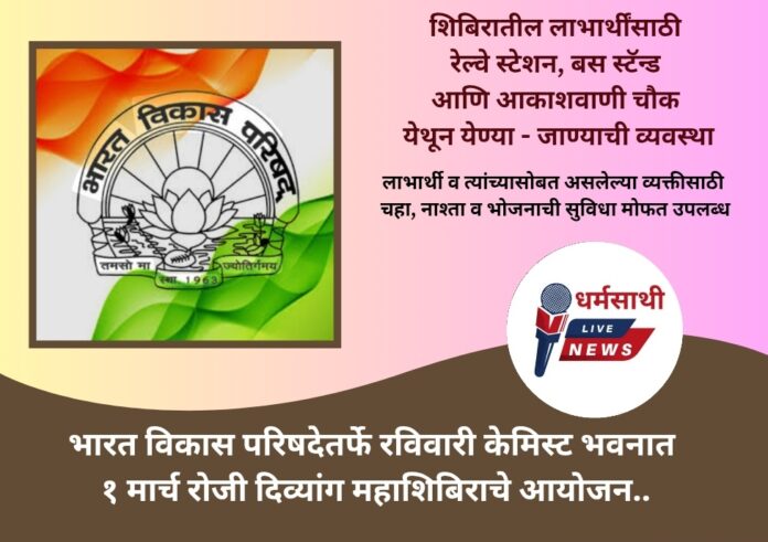 भारत विकास परिषदेतर्फे रविवारी केमिस्ट भवनात दिव्यांग महाशिबिराचे आयोजन.