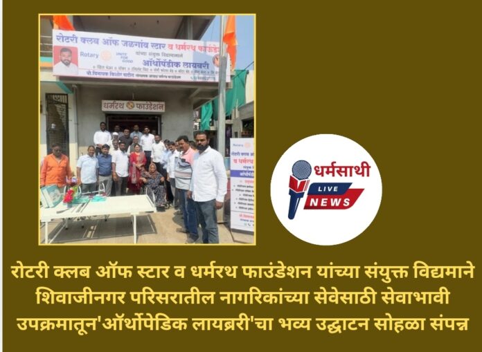 जळगांव-दि.२७(धर्मसाथी मीडिया नेटवर्क)रोटरी क्लब ऑफ स्टार व धर्मरथ फाउंडेशन यांच्या संयुक्त विद्यमाने शिवाजीनगर परिसरातील नागरिकांच्या सेवेसाठी सेवाभावी उपक्रमातून’ ऑर्थोपेडिक लायब्ररी’चा भव्य उद्घाटन सोहळा संपन्न झाला.