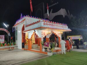 डी.जे.च्या तालावर ठेका धरत गाजतवाजत श्री नवल धाम गोगादेवजी रतनसिंगजी मेढी बाबा रामदेवजी मंदिर येथे आली.या वेळी संपूर्ण मंदिराच्या परिसरात विद्युत रोषणाईने चैतन्यमय वातातावरन निर्माण झाले होते.