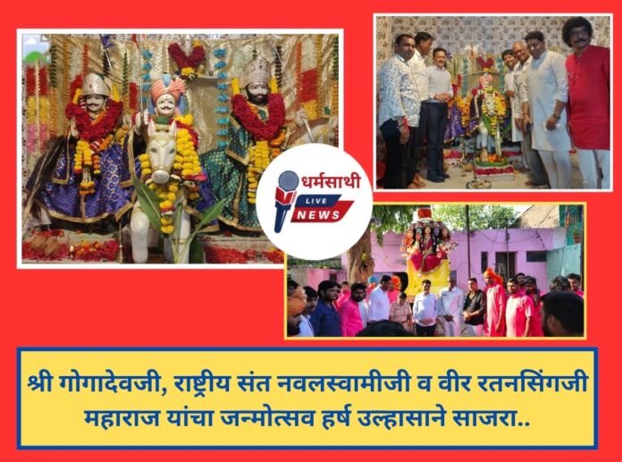 श्री गोगादेवजी,राष्ट्रीय संत नवलस्वामीजी व वीर रतनसिंगजी महाराज यांचा जन्मउत्सव शहरात विविध धार्मिक उपक्रमांनी हर्ष उल्हासाने साजरा करण्यात आला.पूजा अर्चना,भजन,भव्य मिरवणूक,प्रसाद वितरण असे विविध उपक्रम राबवण्यात आले.