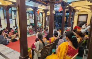 पुजनाचे पौरोहित्य श्री नंदु शुक्ल गुरुजी यांनी केले. दि.१६ ते २२ मे श्री न्यानेश्वरी ग्रंथ पारायण ह.भ.प. श्री अशोक महाराज शिंपी यांनी केले.कीर्तनासाठी मेहरूण,जळगाव, शिरसोली, हरीविठ्ठलनगर , मोहाडी,खेडी,पिंप्राळा, निमखेडी, आदी परिसरातील भाविक,वारकरी, भक्त शिष्य मंडळी उपस्थित होते. पखवाज वादनाची साथ ह.भ.प. श्री पंकज पाटील यांनी केली सखाराम महाराज, निंबा जगताप, संभाजी पाटील, माऊली टेलर, रघुनाथ भाऊ कोळी, रतन माळी, शंकर भाऊ धनगर,अजय व संजय – दिलीप लाडवंजारी ,कारभारी गव्हाणे, बाळू कोळी,मिराबाई,विकास सुतार,फडे गुरुजी,सिद्धेश्वर जोशी,विजयकासार,त्यानंतर संध्याकाळी रामपेठेतील श्रीराम मंदिरात संध्याकाळी ५ वाजता हरिपाठ,श्रीरामरक्षा स्तोत्र पठण धुपारती होऊन वैकुंठवासी ह.भ.प. पुष्पाईंच्या चतुर्थ मासिक पुण्यतिथी निमित्त संध्याकाळी 6.30 वा जळगावातील प्रसिद्ध बालकीर्तनकार ह.भ.प.कु.संस्कृती पवनीकर यांची कीर्तन सेवा झाली.त्यांना हार्मोनियम साथ सौ.स्वरा पाठक तर तबला साथ श्रीधर जोशी यांनी केली. कार्तिकी पाठक,अनुजा कुळकर्णी, भक्ति कुळकर्णी या बाल कलाकार साथ संगत लाभली