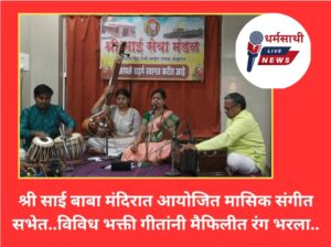 जळगाव – दि.१२(धर्मसाथी मीडिया नेटवर्क)श्रीसाई मासिक संगीत सभेत सुश्री संपदा छापेकर यांनी सादर केलेल्या नंद रागाने आणि विविध भक्ती गीतांनी मैफिलीत रंग भरला.