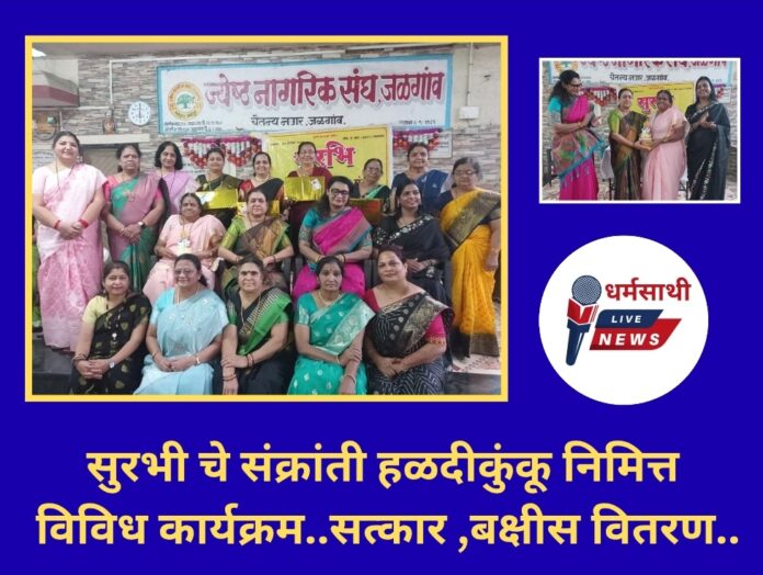 जळगांव – दि.(धर्मसाथी मीडिया नेटवर्क) सुरभी बहुुद्देशिय महिला मंडळातर्फे दि.२४ शनी रोजी ज्येष्ठ नागरिक संघ हॉल मध्ये संक्रांती हळदीकुंकूचे आयोजन करण्यात आले होते.